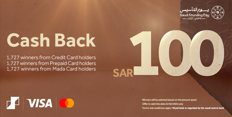 -5,181 top spenders in each of Riyad Bank Credit card, Prepaid card and Debit card will be eligible to win SAR 100 cashback